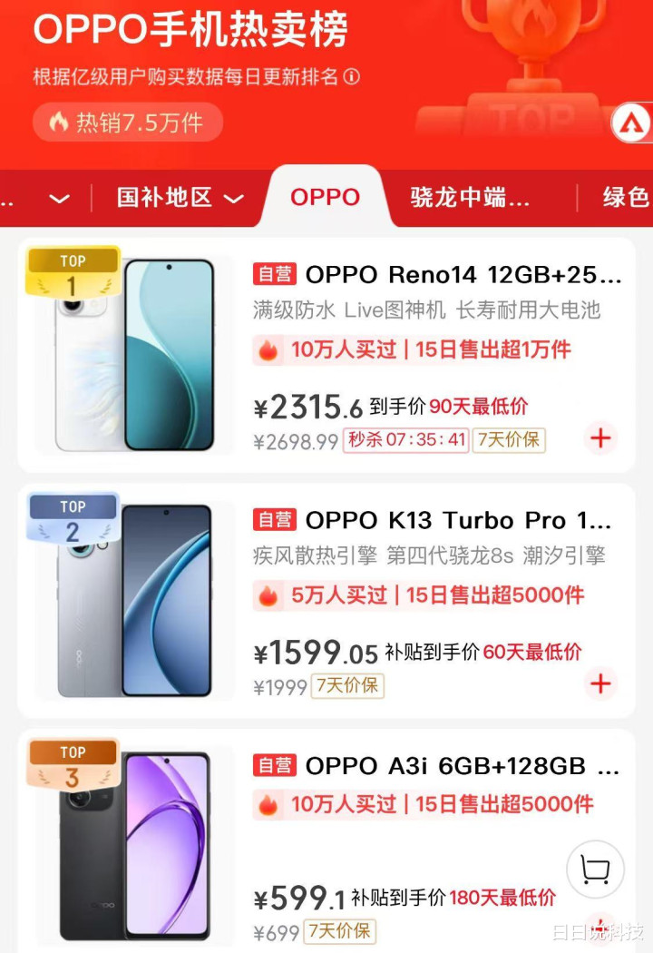 OPPO销量榜第一, 6000mAh+天玑8350+三主摄, 跌至2315元